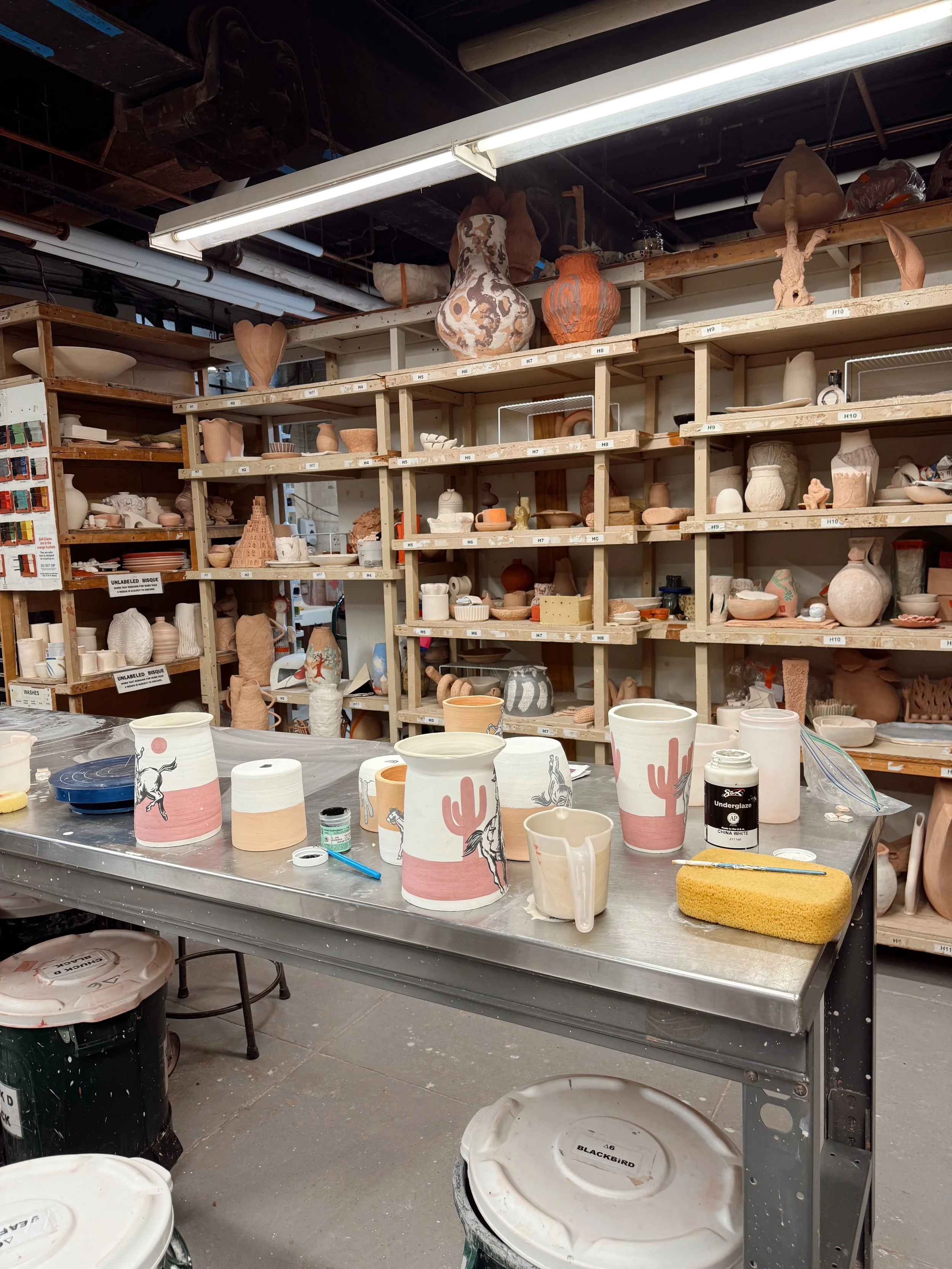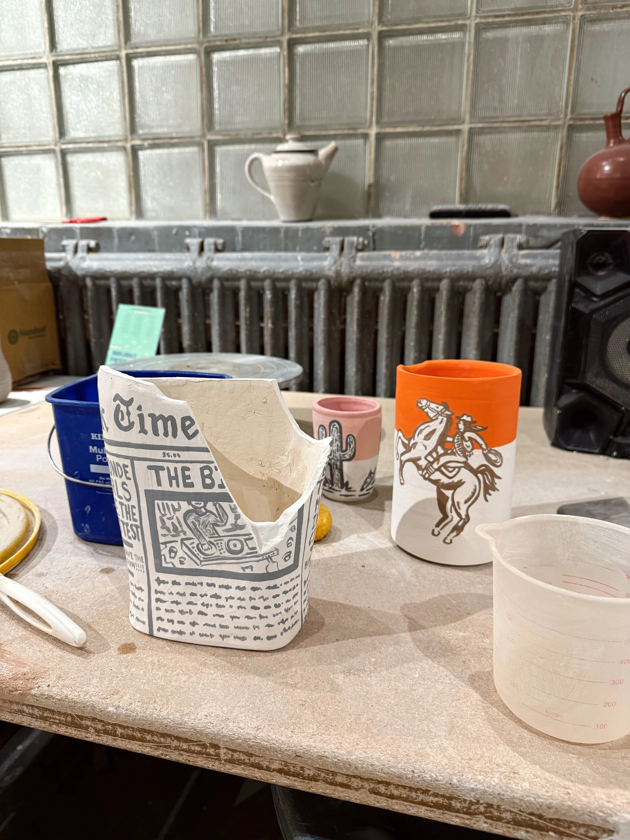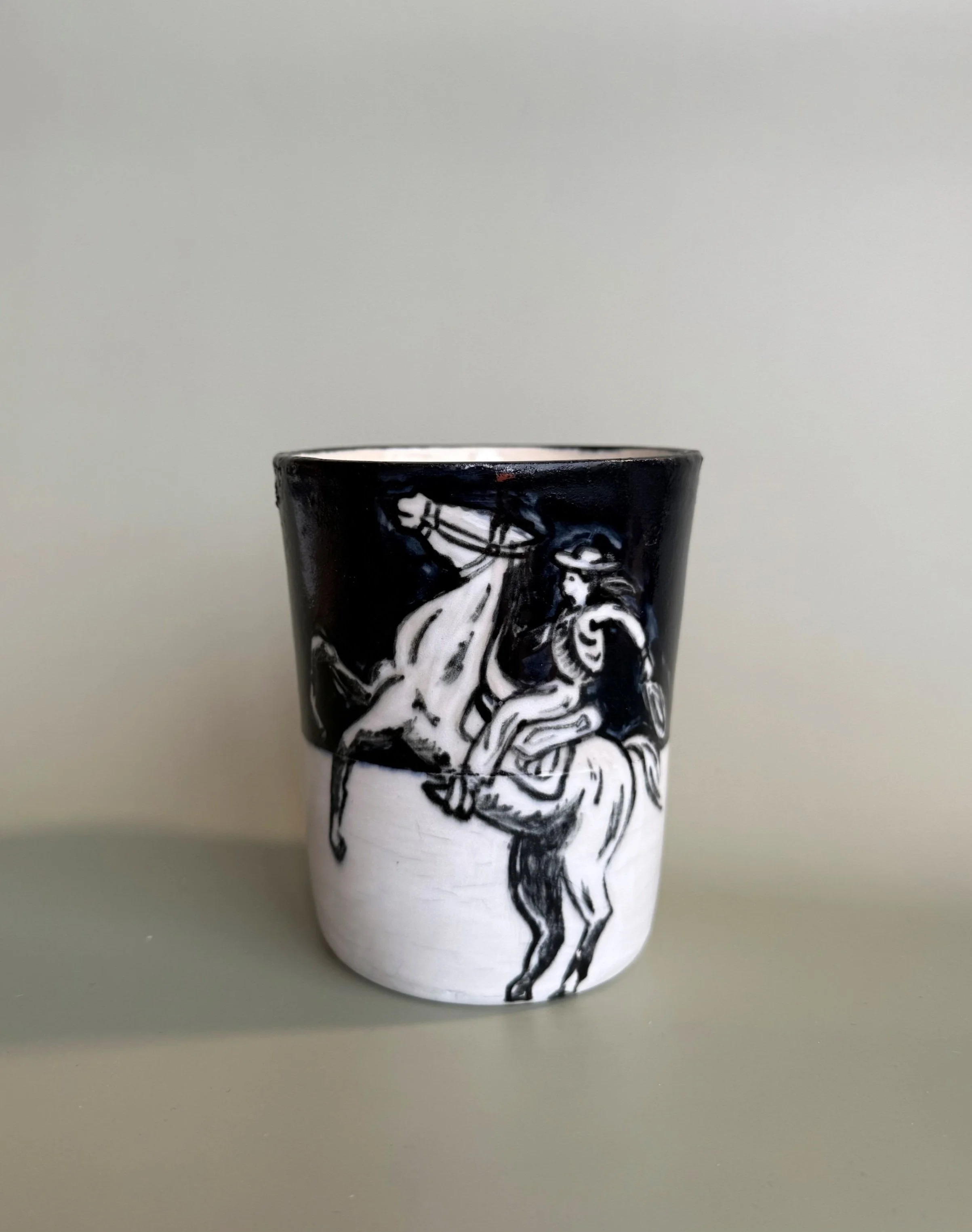 Pottery Cowboy Shooter I $120.00 Cowboy Shooter II $120.00 Rustic Cowboy II $40.00 Rustic Cowgirl I $65.00 Sold Out Rustic Cowgirl II $50.00 Sitting Cowboy I $45.00 Cowboy Moon $40.00 Cowboy Moon II $30.00 Sold Out Western Smoker $40.00 Shooters Cup II $25.00 Kissing Cowgirls $70.00 Dancing Ladies I $35.00 Dancing Ladies II $25.00 Black Mug $25.00 Black Bubble Candle $40.00 Pinch Pot $20.00 Blue Lined Candle $25.00 Blue Lined Mug $25.00 Blue Swirl Dish $20.00 Coral Leaves $25.00 Orange Abstract $25.00 Sold Out Striped Holder $25.00 Abstract Bowl $35.00 Abstract Small Vase $35.00 Abstract Vase $100.00 Green Abstract Bowl $30.00 Leaf Planter $25.00 Grey Carved Cup $20.00 Speckled Cup $25.00 Speckled Bowl $30.00 Cowgirl Cup $30.00 Cowboy Mini $20.00 Cowgirl Rider $60.00 Sold Out Rustic Cowboy I $45.00 Sold Out Sitting Cowboy II $40.00 Sold Out Shooters Mug $35.00 Sold Out Shooter Cup I $30.00 Sold Out Cowboy Rider $90.00 Sold Out Camo Small Vase $30.00 Sold Out Western Collection I $250.00 Sold Out NYT Newspaper $200.00 Sold Out Oranges $60.00 Sold Out Blue Lines $25.00 Sold Out Speckled Collection $100.00 Sold Out